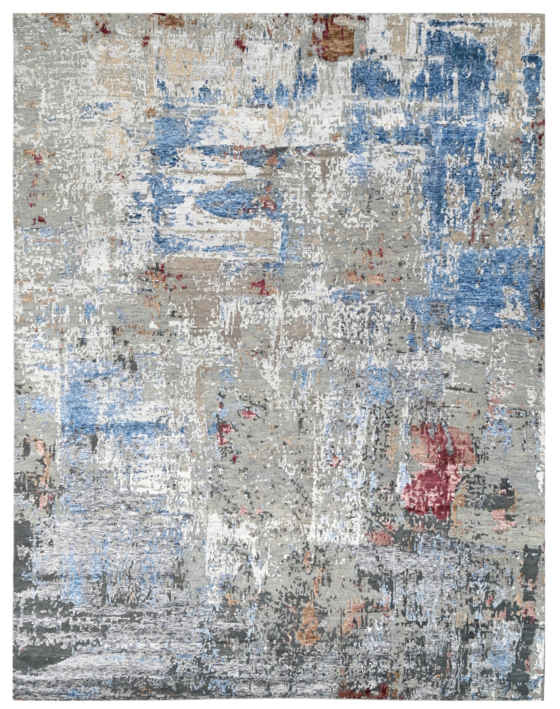 Nimbus captures the soft drama of shifting skies, with layered washes of blue, lilac, grey, and subtle mineral tones drifting across a neutral base. The abstract composition feels atmospheric and fluid, balancing movement with calm. Gentle contrasts and textural depth give Nimbus a refined presence, making it ideal for contemporary, coastal, and softly layered interiors where colour is introduced with restraint.