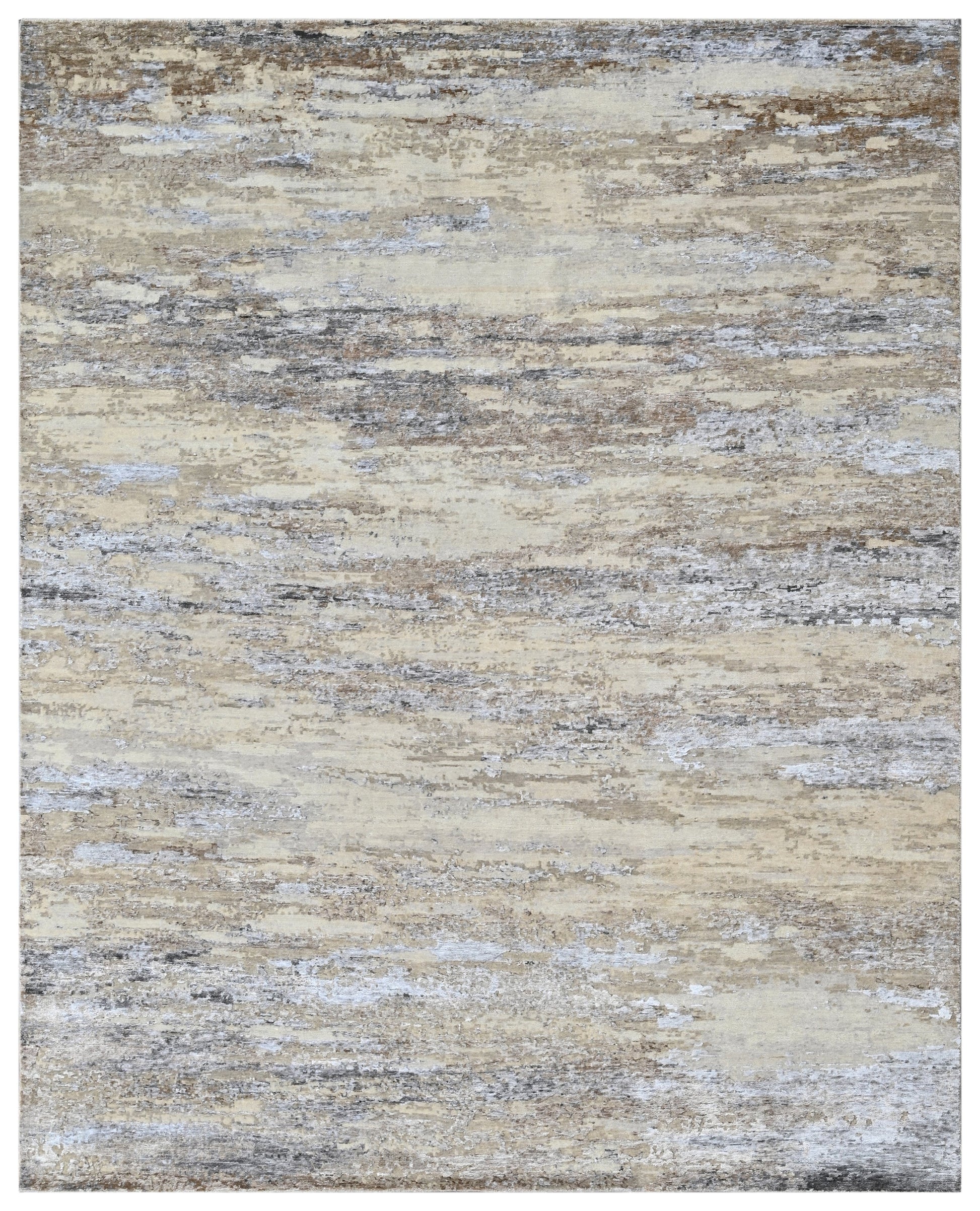 Quarry draws inspiration from natural stone formations, with softly striated layers that echo sediment, weathering, and time-worn surfaces. A balanced palette of warm beige, silver grey, and subtle copper tones creates quiet depth, while the hand-knotted bamboo silk adds a gentle luminosity across the textured design. Refined yet grounded, Quarry brings an architectural calm to modern living spaces.